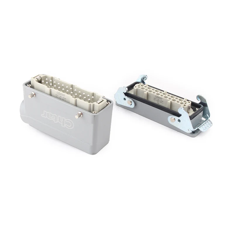M/F 24 পিন ইনসার্ট হেভি ডিউটি ​​কানেক্টর হল হেভি ডিউটি ​​কানেক্টর HDC-HE-024 এর ইনসার্ট পার্টস। এগুলি পিসি এবং পিতলের পিন দিয়ে তৈরি। ইনসার্ট পার্টস এবং অ্যালুমিনিয়াম হাউজিং পার্টস হেভি ডিউটি ​​কানেক্টরের সম্পূর্ণ সেট হিসেবে একত্রিত হয়। সন্নিবেশ অংশ বৈদ্যুতিক সংযোগ ফাংশন এবং অ্যালুমিনিয়াম হাউজিং সুরক্ষিত সন্নিবেশ অংশ. এটি IP65 সুরক্ষা পর্যন্ত।